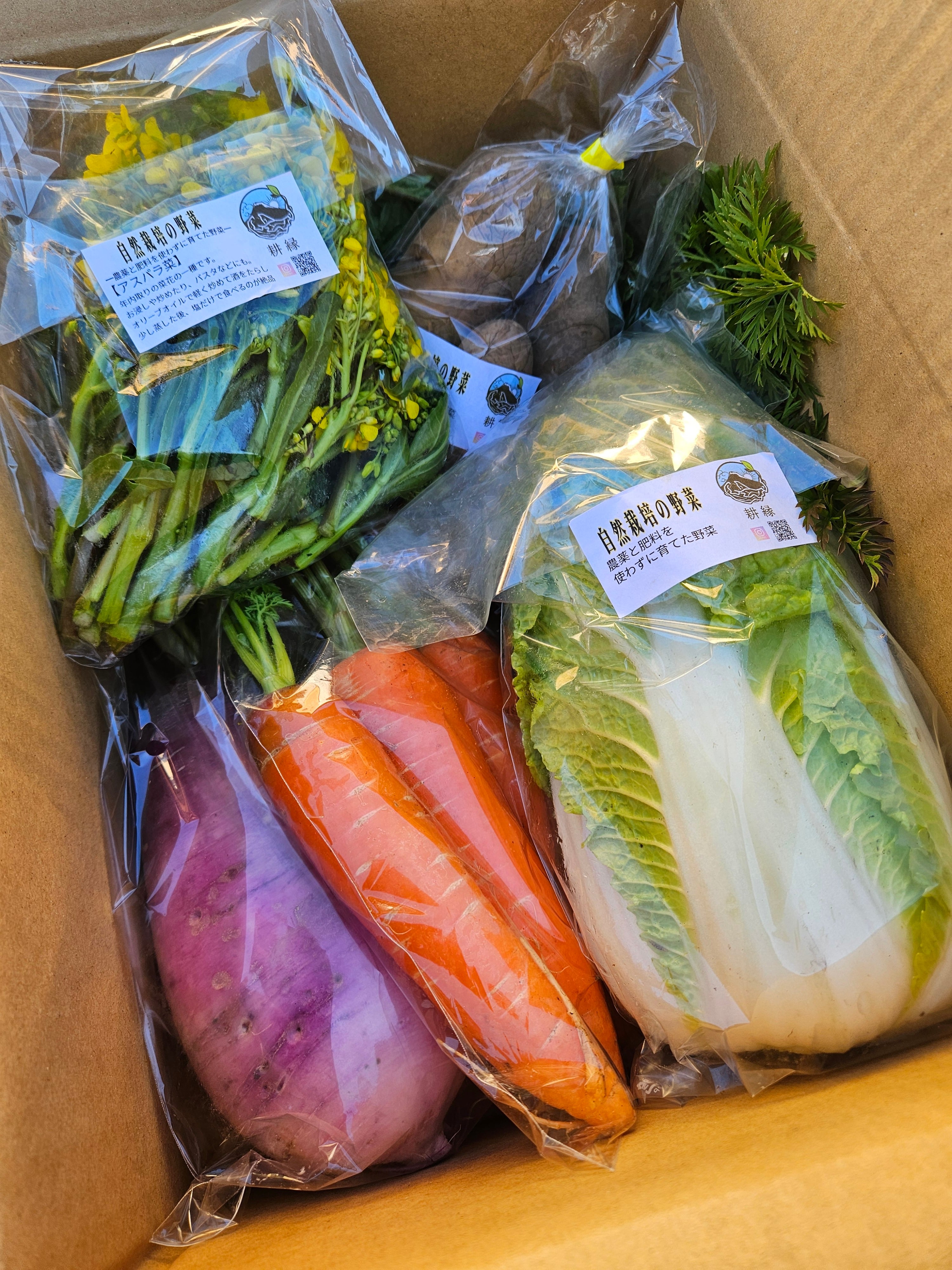季節によって内容が変わるため、常に新鮮な野菜をお届けいたします。アレルギーや特定の食材の制限がある方は、事前にご確認の上ご注文ください。